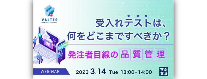 当社は、2023年3月14日(火)にマジセミに登壇し、「受入れテストは、何をどこまですべきか? ~発注者目線の品質管理~」について講演いたします。
