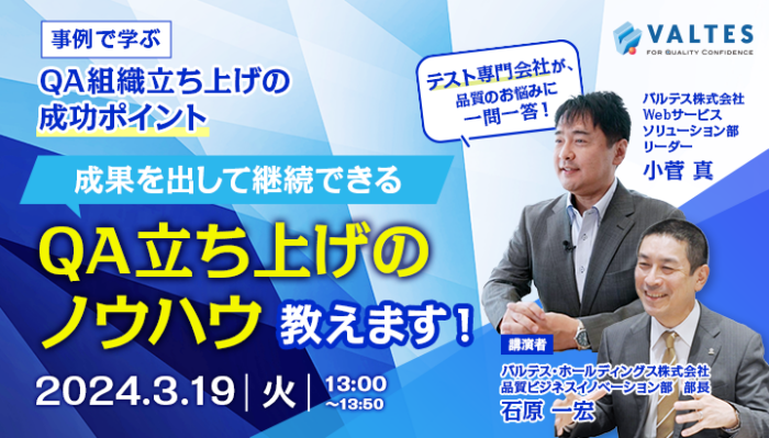 当社は、2024年3月19日(火)に、QA立ち上げのポイントを解説する無料Webセミナーを開催いたします。