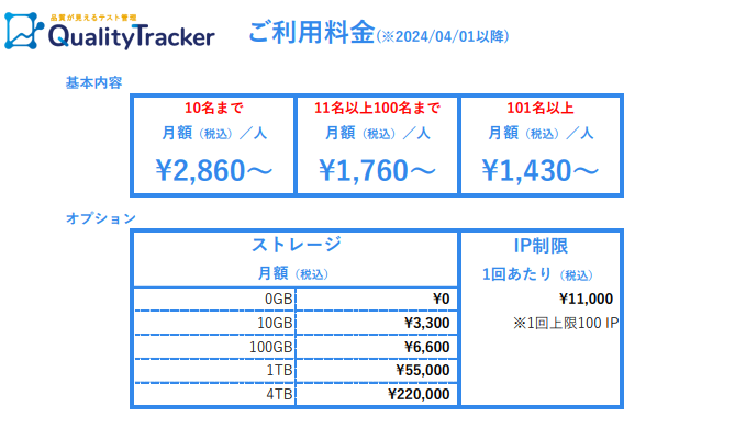 テスト管理ツール「QualityTracker」2024年4月より料金改定