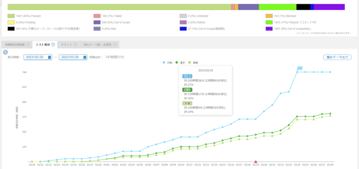 QualityTrackerは、クラウドベースでテスト実行時の進捗管理、テストケースの管理が可能になるツールです。EVM※を採用し、仕事量ベースで管理することによって、各テストの進行状況がリアルタイムで表示され、どれだけ前倒し・遅延しているかなど正確な進捗管理が一目瞭然で把握できます。テスト管理者、プロジェクト管理者、テスト実行者などプロジェクト参加者全員が作業全体を見ることができ、その進捗状況から、管理者はテスト実行者のタスク振り分けを随時行うことで、そのプロジェクトの効率化が可能となり、チームの生産性向上効果が見込めます。