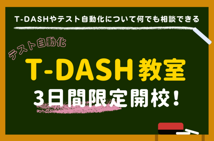 テスト自動化ツールを導入してみたいけど難しそう、実際にT-DASHを使っているけど使いこなせていない、など、T-DASHやテスト自動化についてなら何でも相談できる「T-DASH教室」を、会期中3日間限定で開校します。