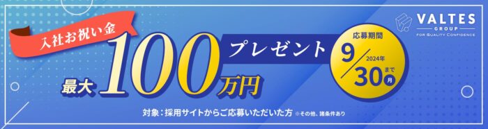 当社含むバルテスグループ、入社お祝い金として最大100万円を贈呈する採用キャンペーンを開始