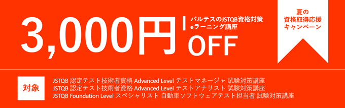 バルテスは、JSTQB資格の取得に役立つeラーニングの3,000円引きクーポンを期間限定で発行いたしました。