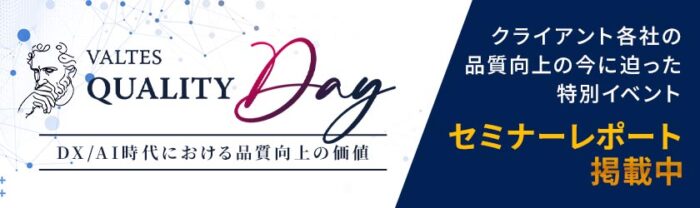 2024年5月29日(水)に開催したカンファレンスイベント「VALTES QUALITY DAY ~DX/AI時代における品質向上の価値~」のレポートを公開いたしましたのでお知らせいたします。