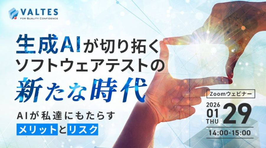 バルテス株式会社は、2026年1月29日(木)に「生成AIが切り拓くソフトウェアテストの新たな時代」をテーマとした無料オンラインセミナーを開催いたします。